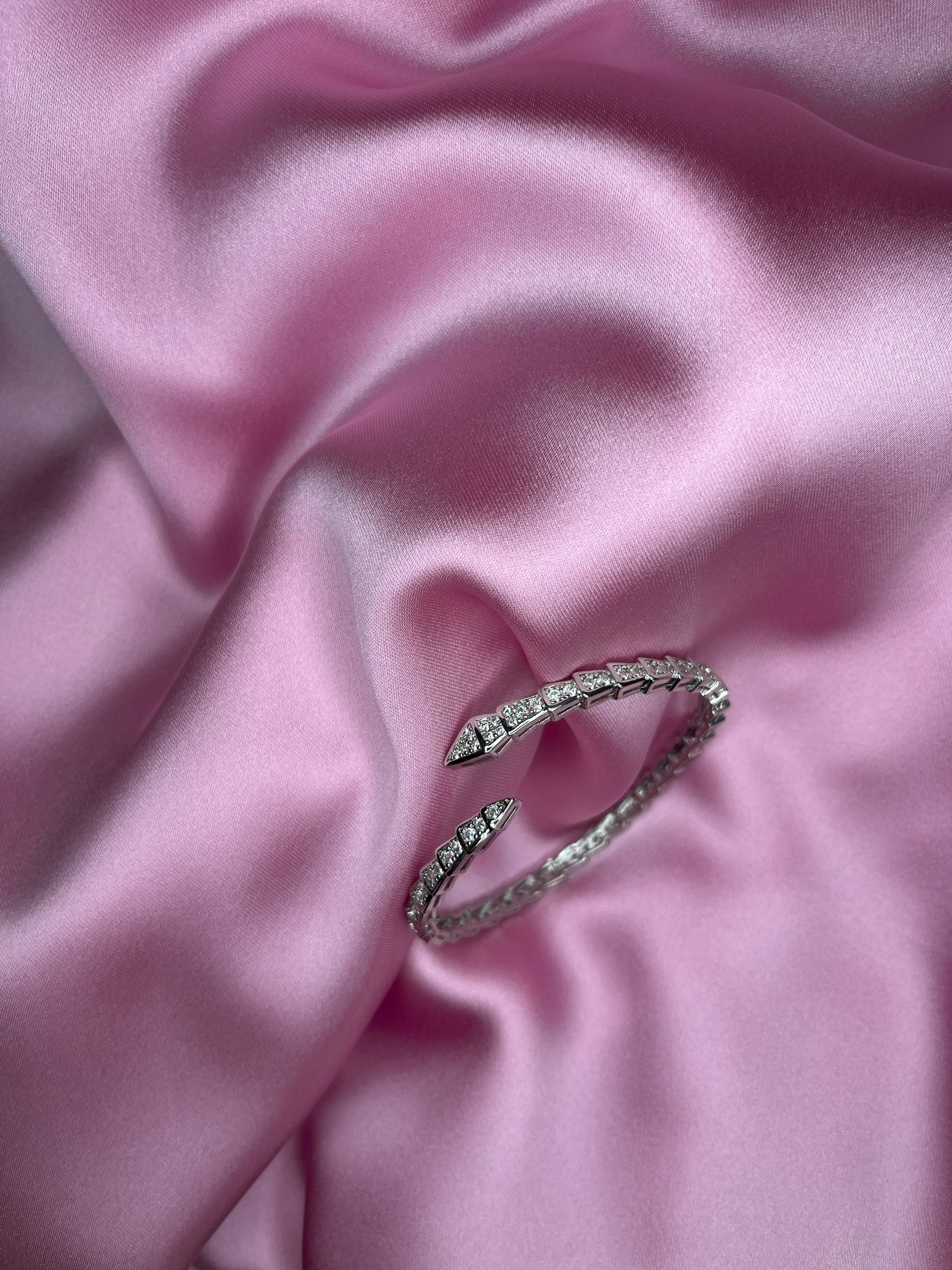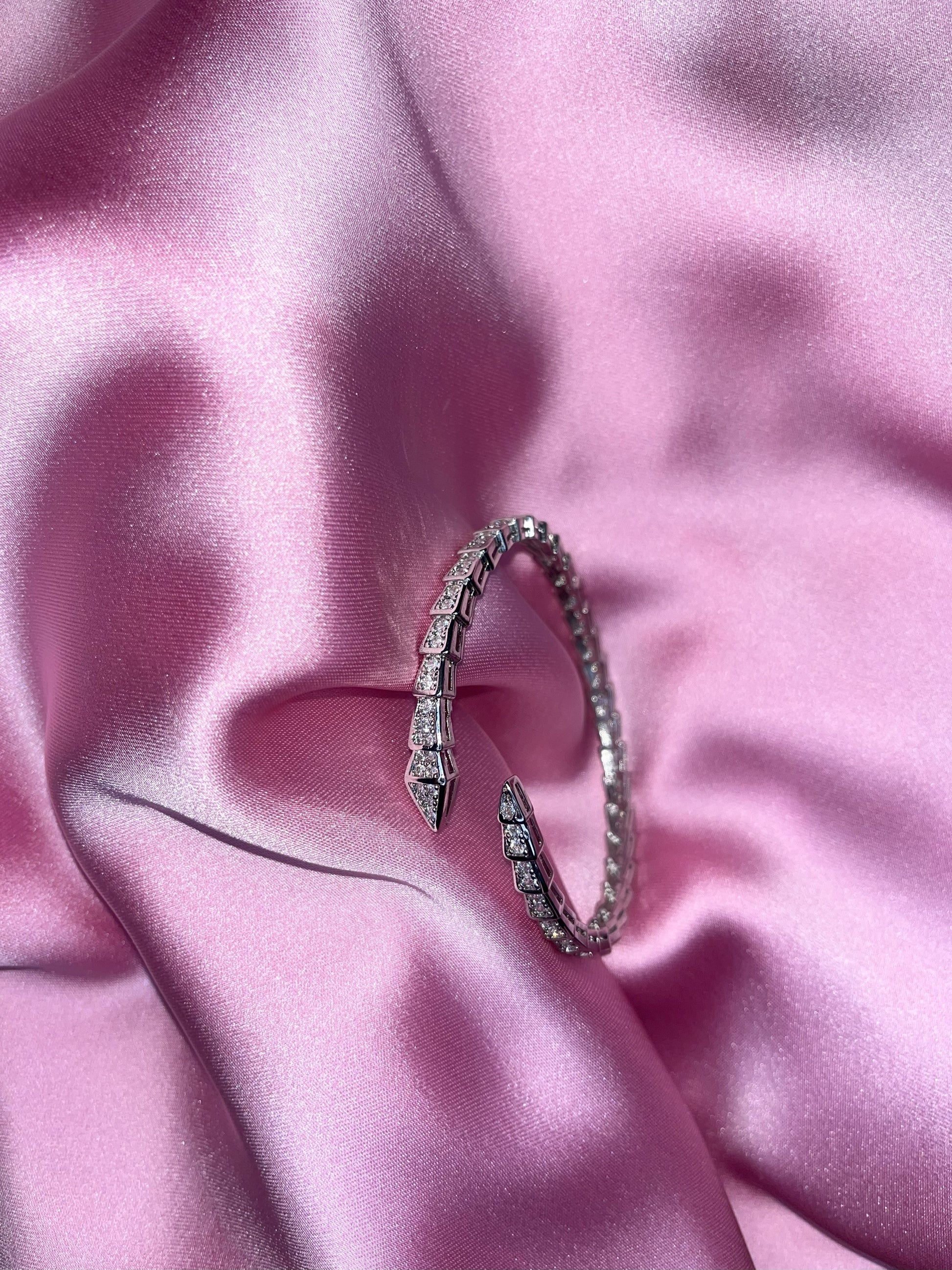 Silver plated crystal snake bangle