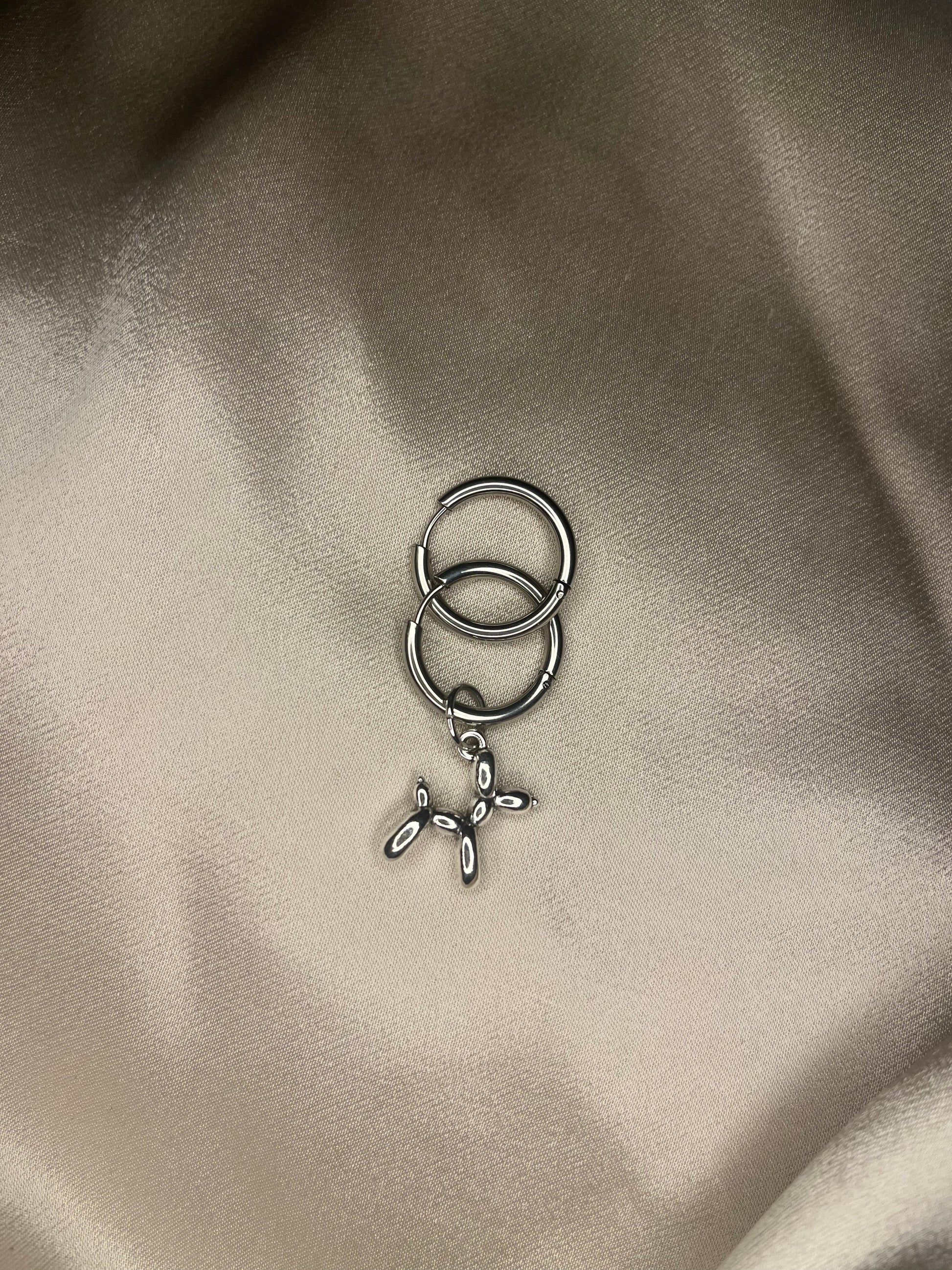Silver plated hoops with dog pendant